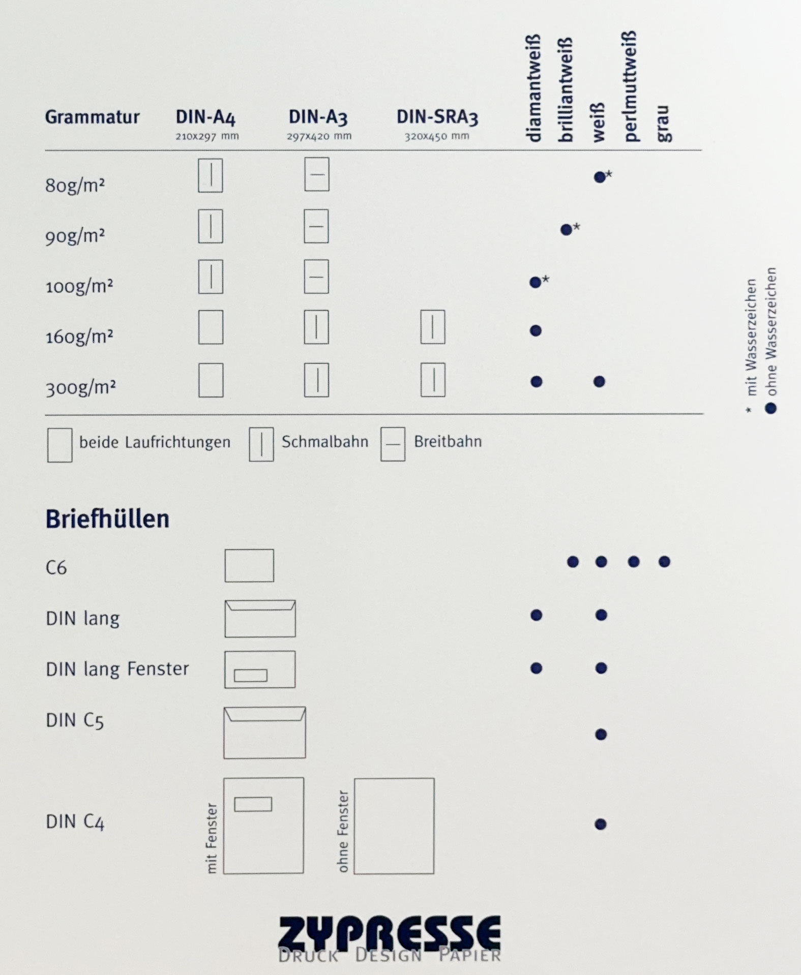 ​Alle Papiere erhalten Sie bei uns in Ihrem Wunschformat.