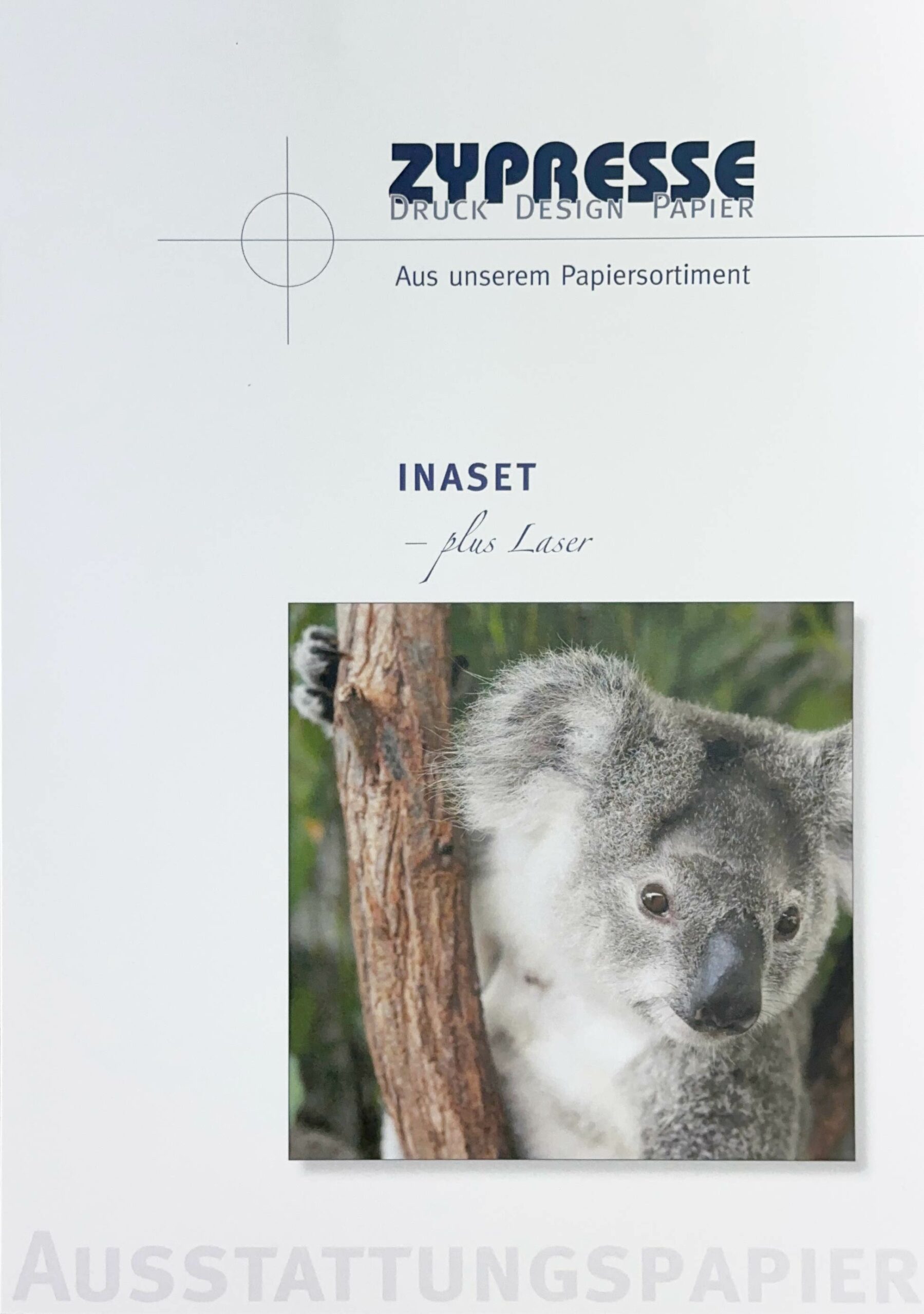 Inaset wird ausschließlich aus Eukalyptus-Zellstoff hergestellt. Weil das Holz dieses Baumes besonders dicke Zellwände besitzt, lässt sich aus ihm ein einzigartiger Zellstoff gewinnen; die Grundlage für die hervorragende Qualität dieses Papiers. Es besitzt in den Grammaturen 80 bis 120g/qm eine Funktionsgarantie für Laser-, Inkjet- und Preprint-Einsätze.
