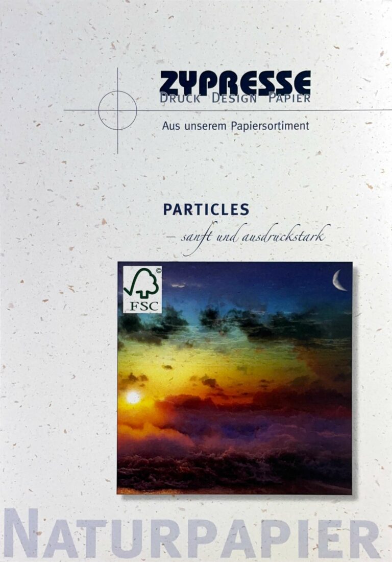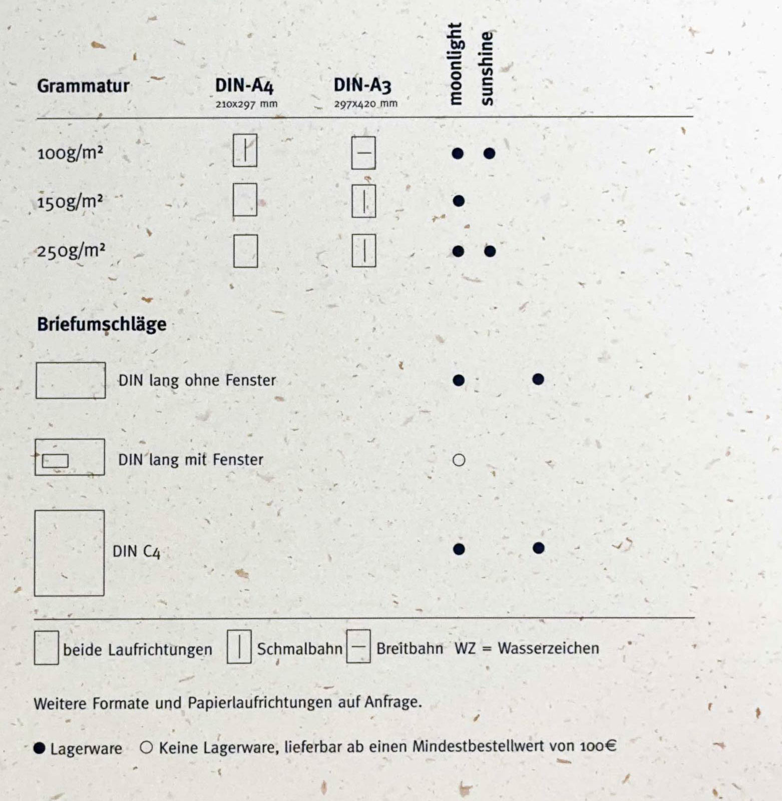 Wählen Sie zwischen zwei sanften und ausdrucksstarken Varianten mit Einschlüssen, bei der größere Altpapier-Fasern als optisches Element genutzt werden. Erhältlich in den Farben „moonlight“ und „sunshine“. Ein auffallend schönes FSC-Papier für besondere Druck-Ergebnisse.