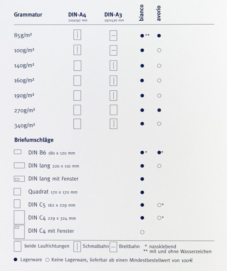 Alle Papiere erhalten Sie bei uns in Ihrem Wunschformat.